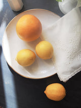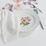 Paire de serviettes de table en voile de coton, bordées de fine dentelle.