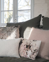 Le décor automnal du Coussin EGLANTIER a été peint à la main. Le velours, imprimé en Autriche, restitue très fidèlement la subtilité du décor original. Coups de pinceaux, taches aquarellées, et petits accidents orange fluo, vous surprendront de réalisme.