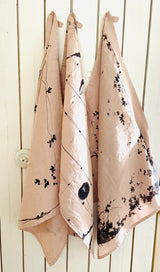 Le décor des torchons en lin surteint a été crée à l'encre de Chine en exclusivité pour Illustre Paris.